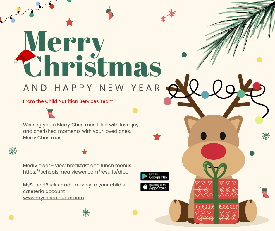 Visit https://schools.mealviewer.com/results/diboll to see your school's menus today! You can also download MealViewer in the app store for free. If you need to add money to your child's account for snacks, you can visit www.myschoolbucks.com to pay online or send money in a labeled envelope to your child's school.